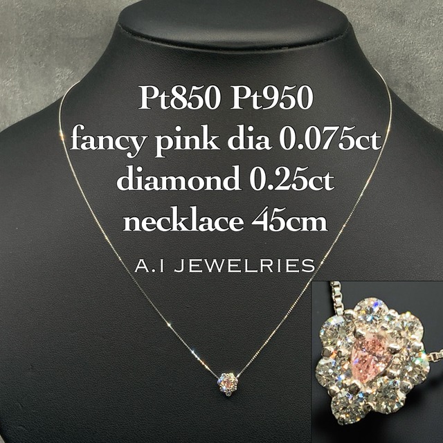 プラチナ850プラチナ950 ファンシーピンクダイヤモンド 0.075カラット ダイヤモンド 0.24カラット ネックレス・チェーン 45センチ / Pt850 Pt950 fancy pink diamond 0.075ct diamond 0.24ct necklace chain 45cm 品番pn-85837