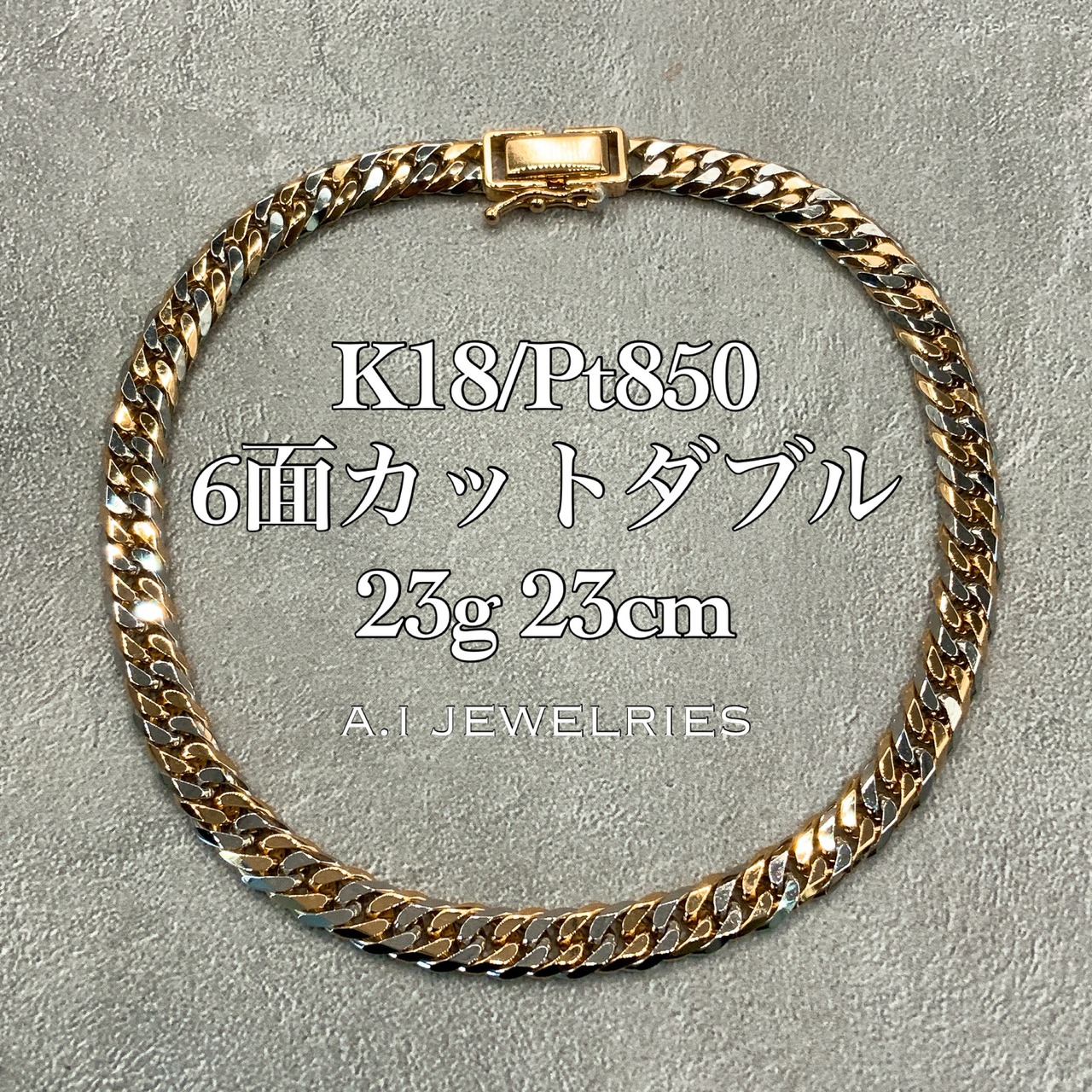 18金 プラチナ850 6面カットダブル 喜平 コンビ アンクレット 23グラム 23センチ / K18 Pt850 6cut double kihei anklet 23g 23cm/品番kp6w-2323