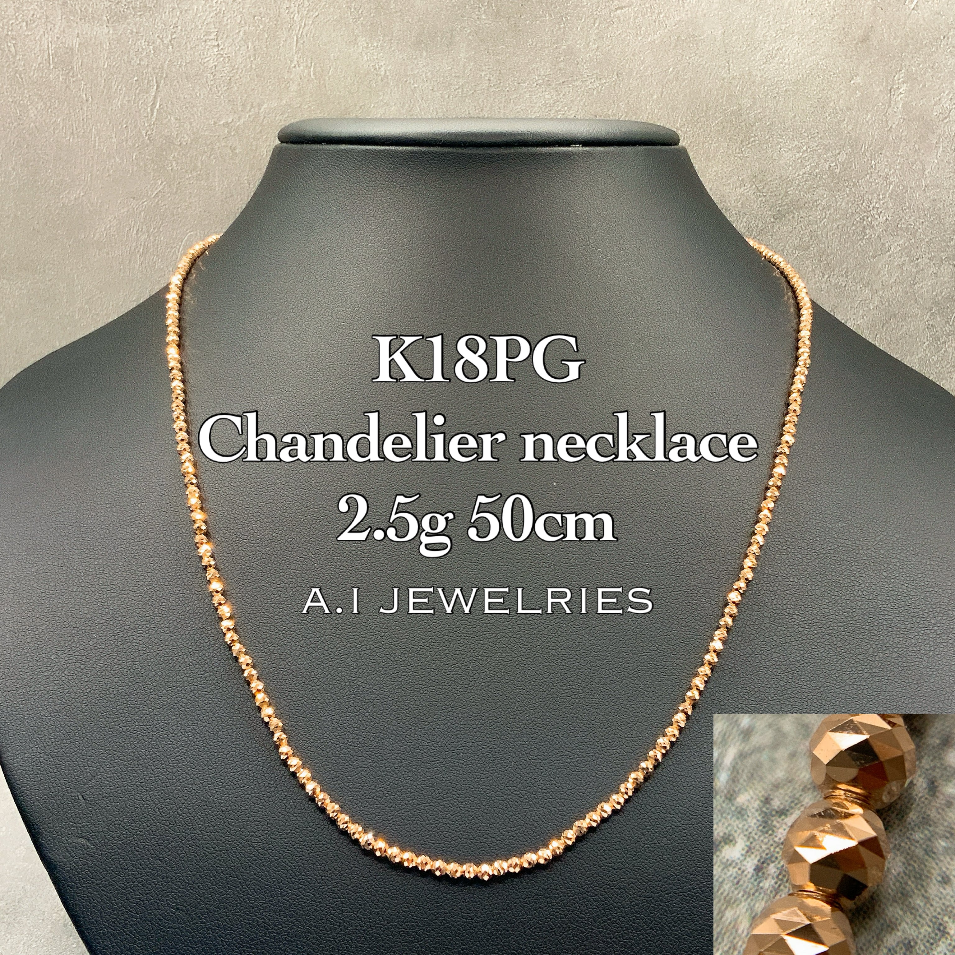 #K18PG #18金ピンクゴールド #金 #シャンデリアネックレス #chandelier #ネックレス #necklace #チェーン #デザインチェーン #aijewelries #2.5mm玉 #2.5mm #エイアイジュエリーズ #50cm