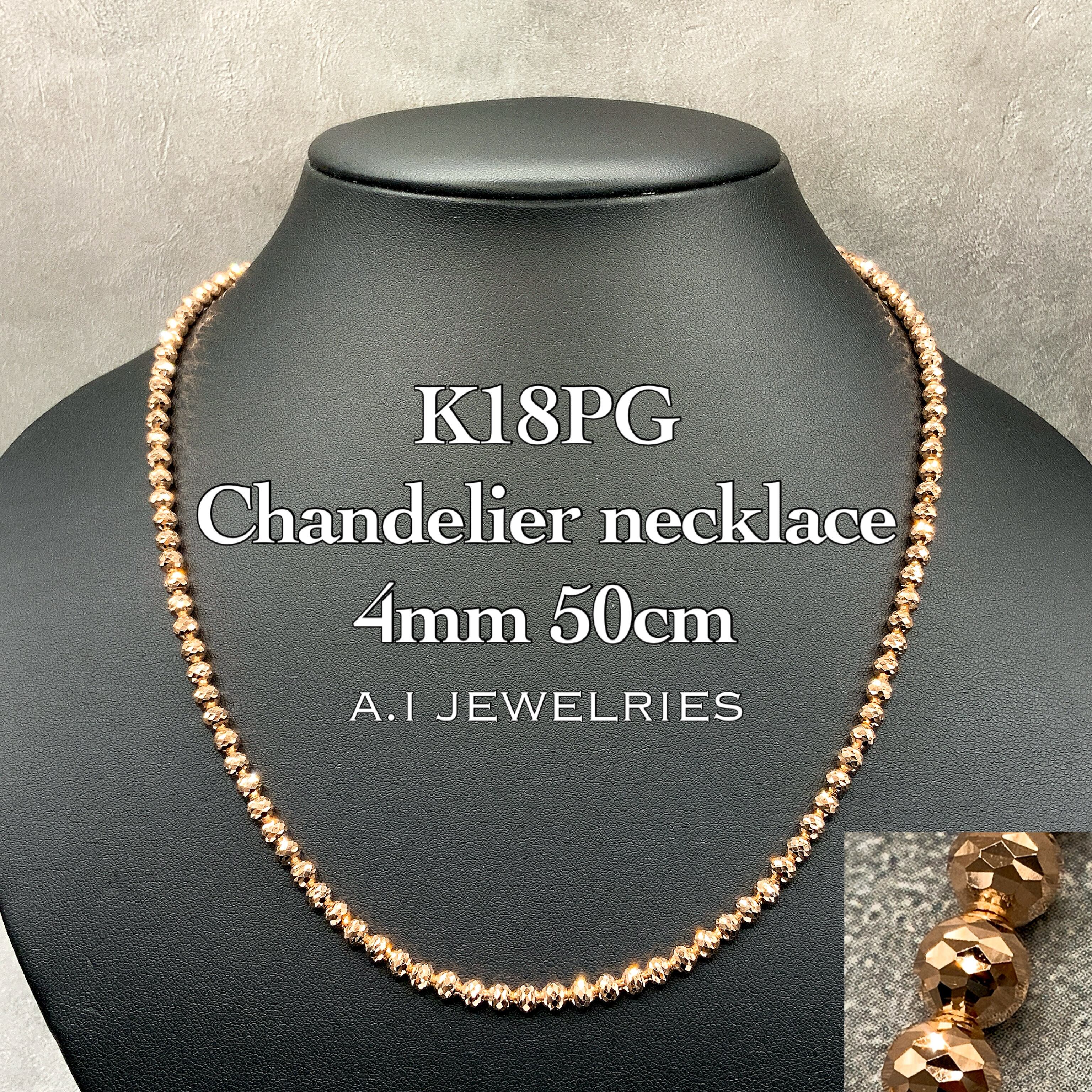 #K18PG #18金ピンクゴールド #シャンデリアネックレス #chandelier #ネックレス #necklace #チェーン #デザインチェーン #aijewelries #4ミリ玉 #エイアイジュエリーズ #50cm