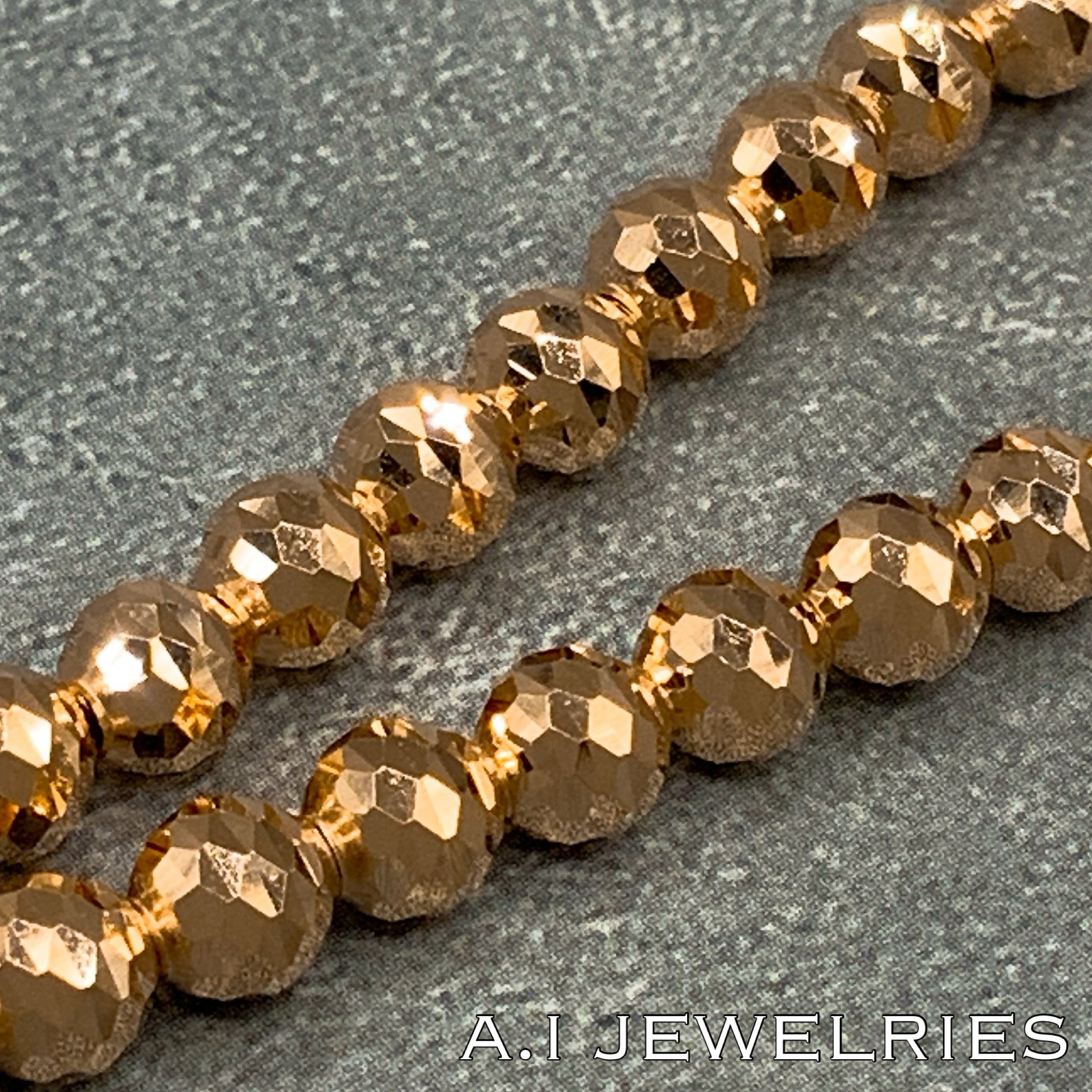 4mmの程よいボリュームに加え、ひとつひとつのビーズに施された多面カットが強烈な煌めきを放ち、存在感抜群の仕上がりです。
