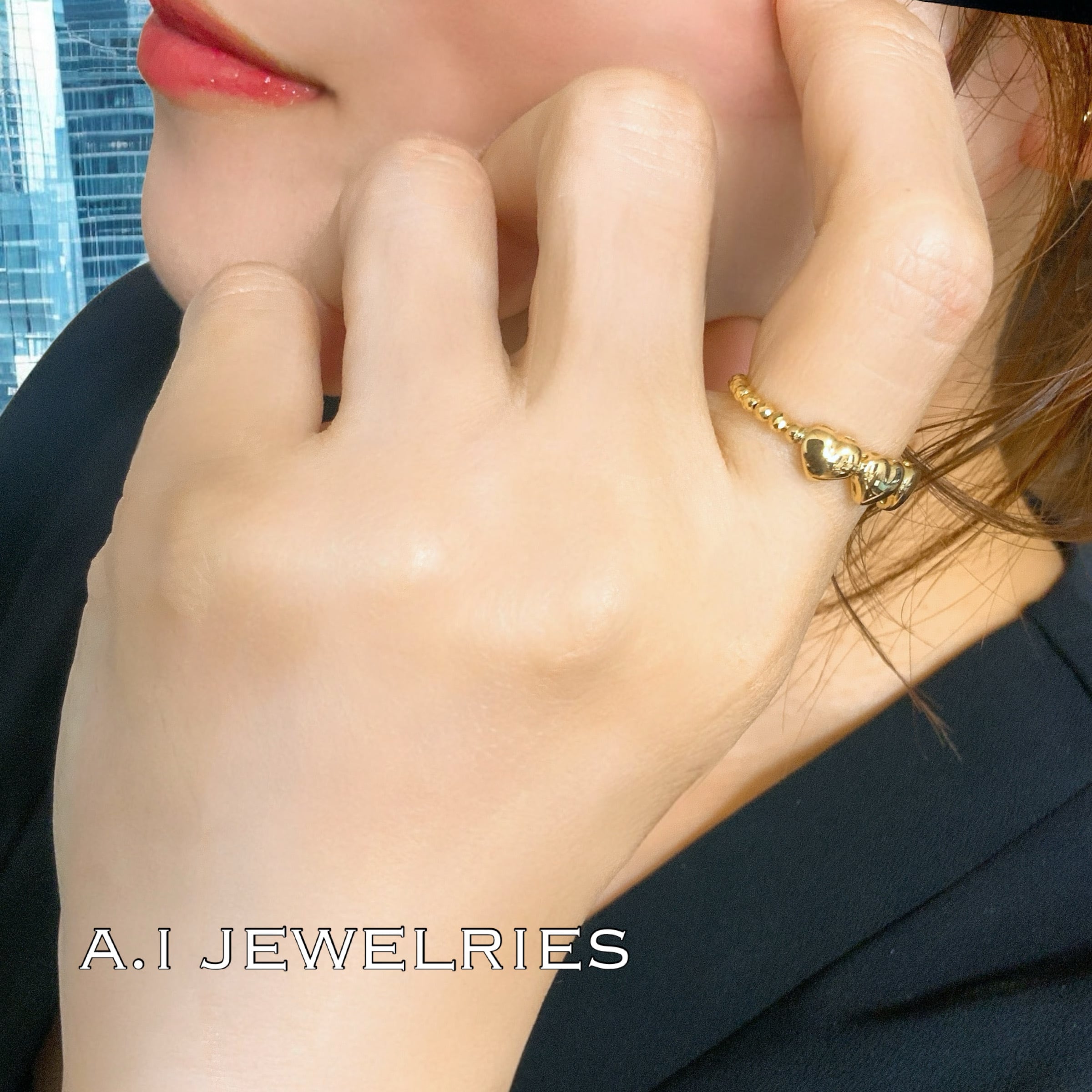 リング内部に形状記憶ワイヤーを通しているため、指のサイズに合わせて調整でき、人差し指から小指など、気分に合わせて付け替えを楽しめます。