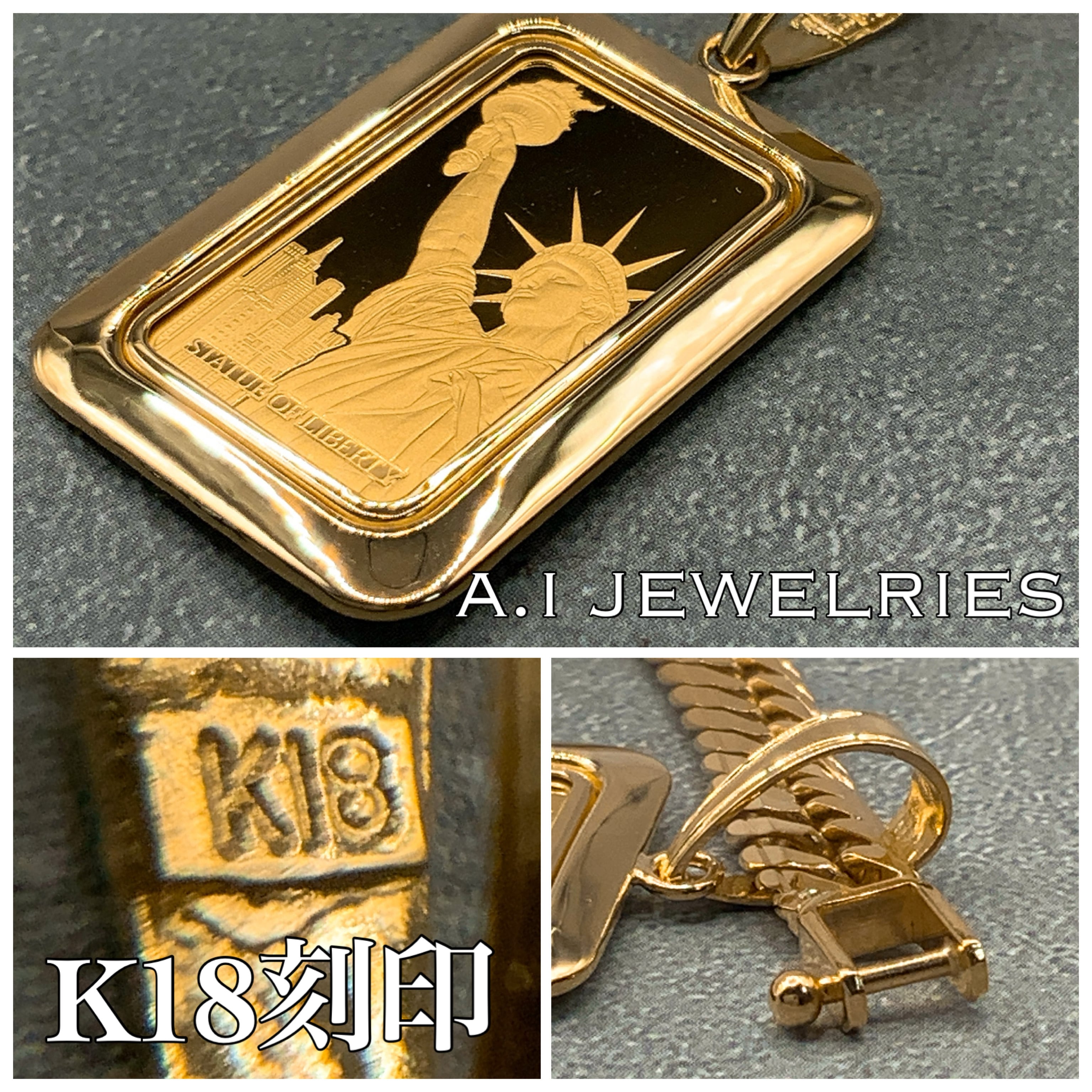 #K18 #18金 #24金 #純金 #シンプル枠 #中空枠 #2グラムインゴット #ingot #liberty #リバティー #自由の女神 #オシャレ #pendant #ペンダント#エイアイジュエリーズ #aijewelries