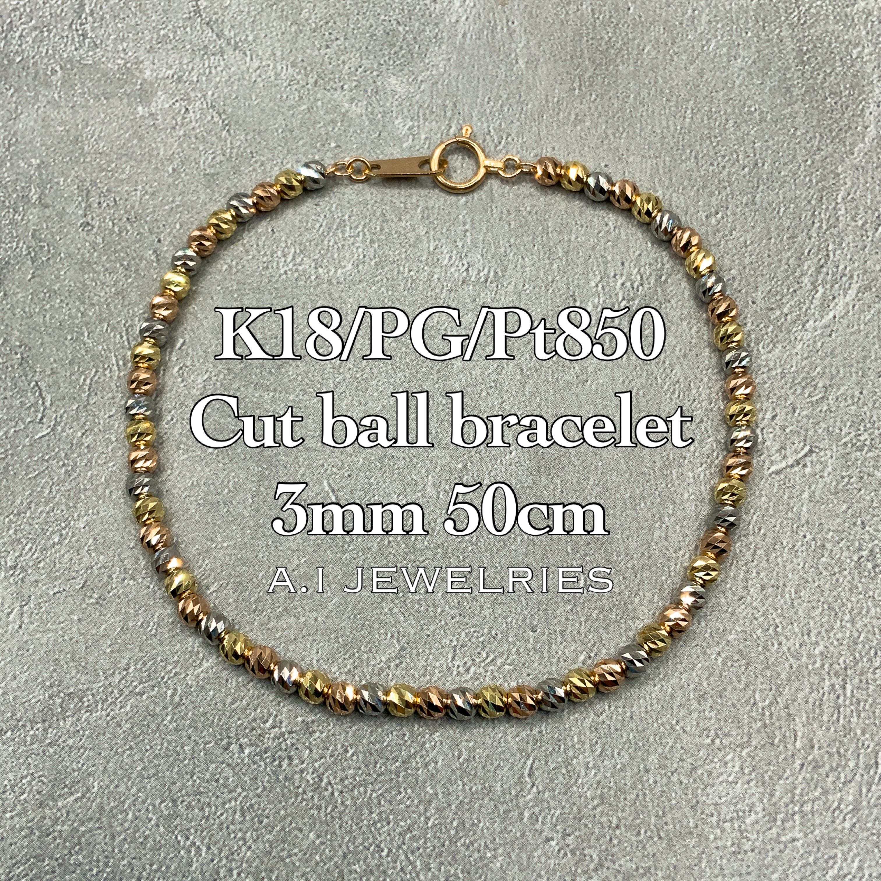 #K18 #18金 #ピンクゴールド #Pt850 プラチナ850 #カットボール #Cut ball #ブレスレット #bracelet #チェーン #デザインチェーン #3mm #aijewelries #エイアイジュエリーズ #18cm