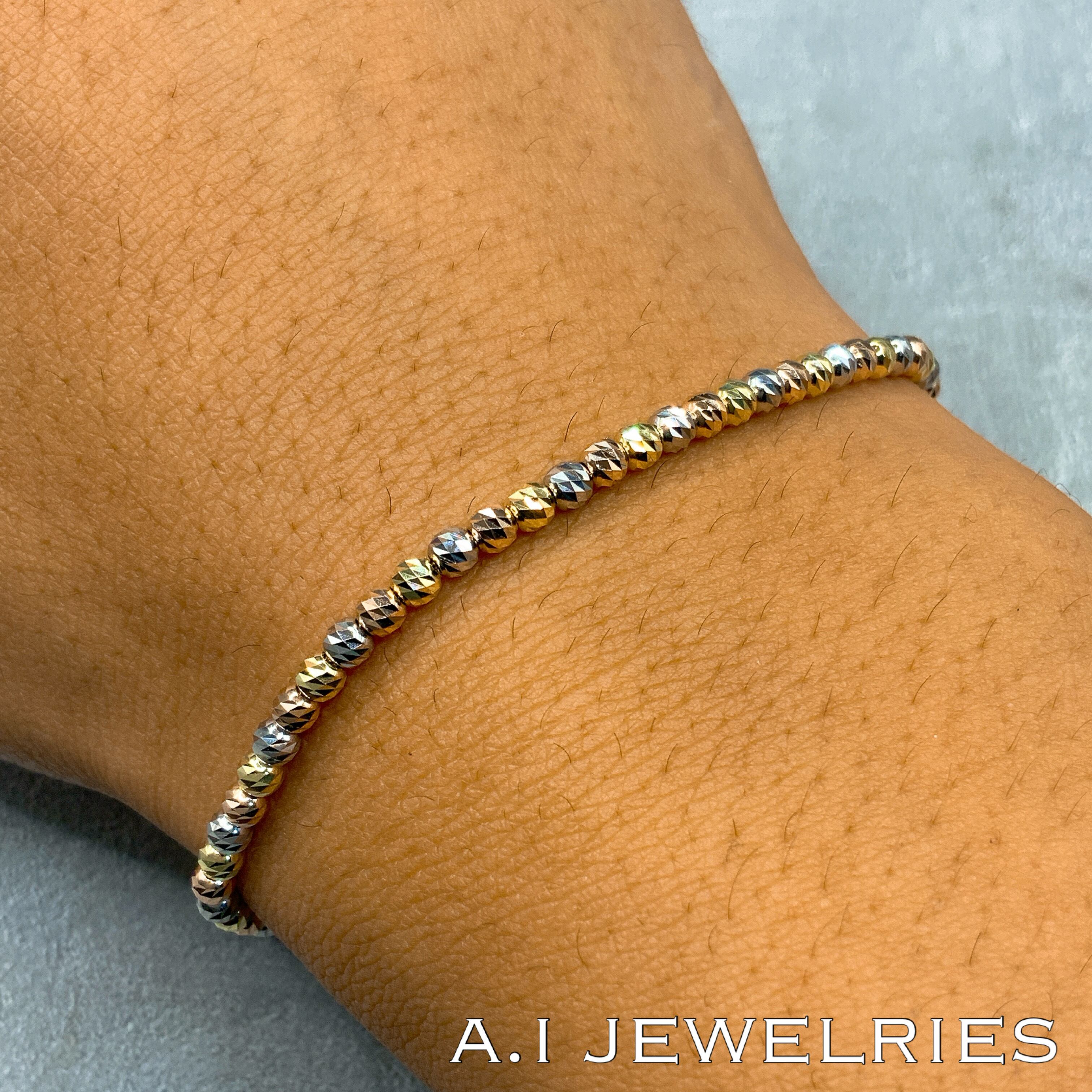 K18、ピンクゴールド、Pt850を組み合わせた、カットボールブレスレット。