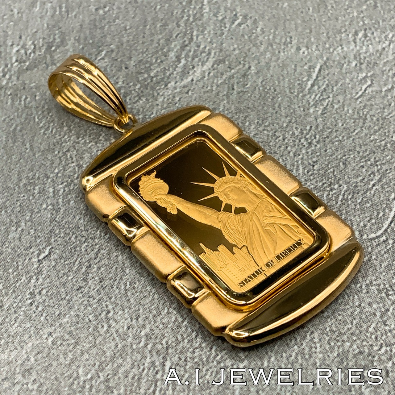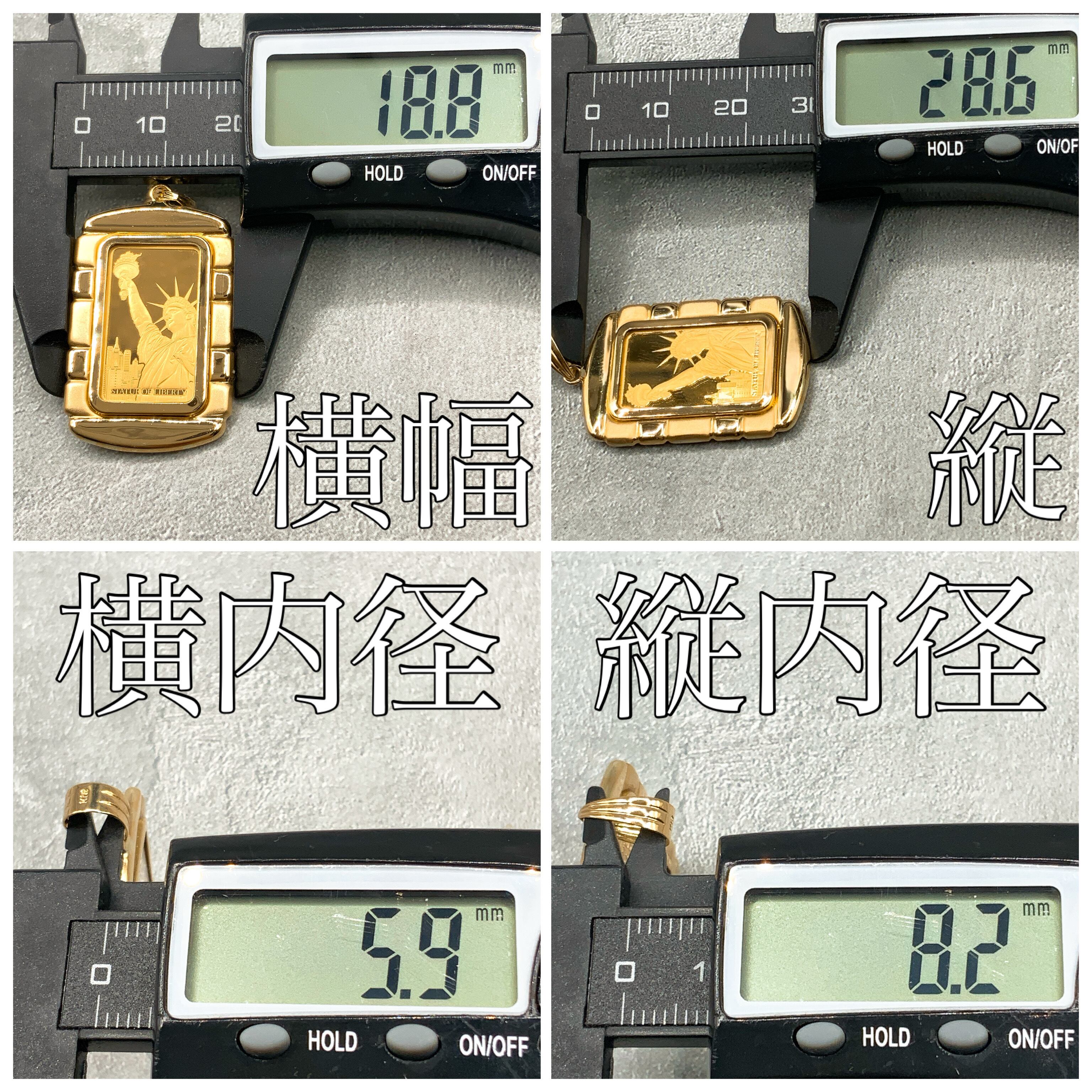 24金特有の高純度な輝きと、繊細にデザインされた自由の女神像が、高級感を引き立たせております。