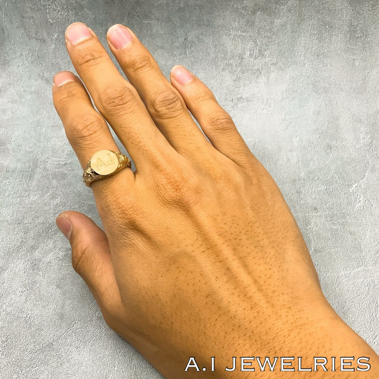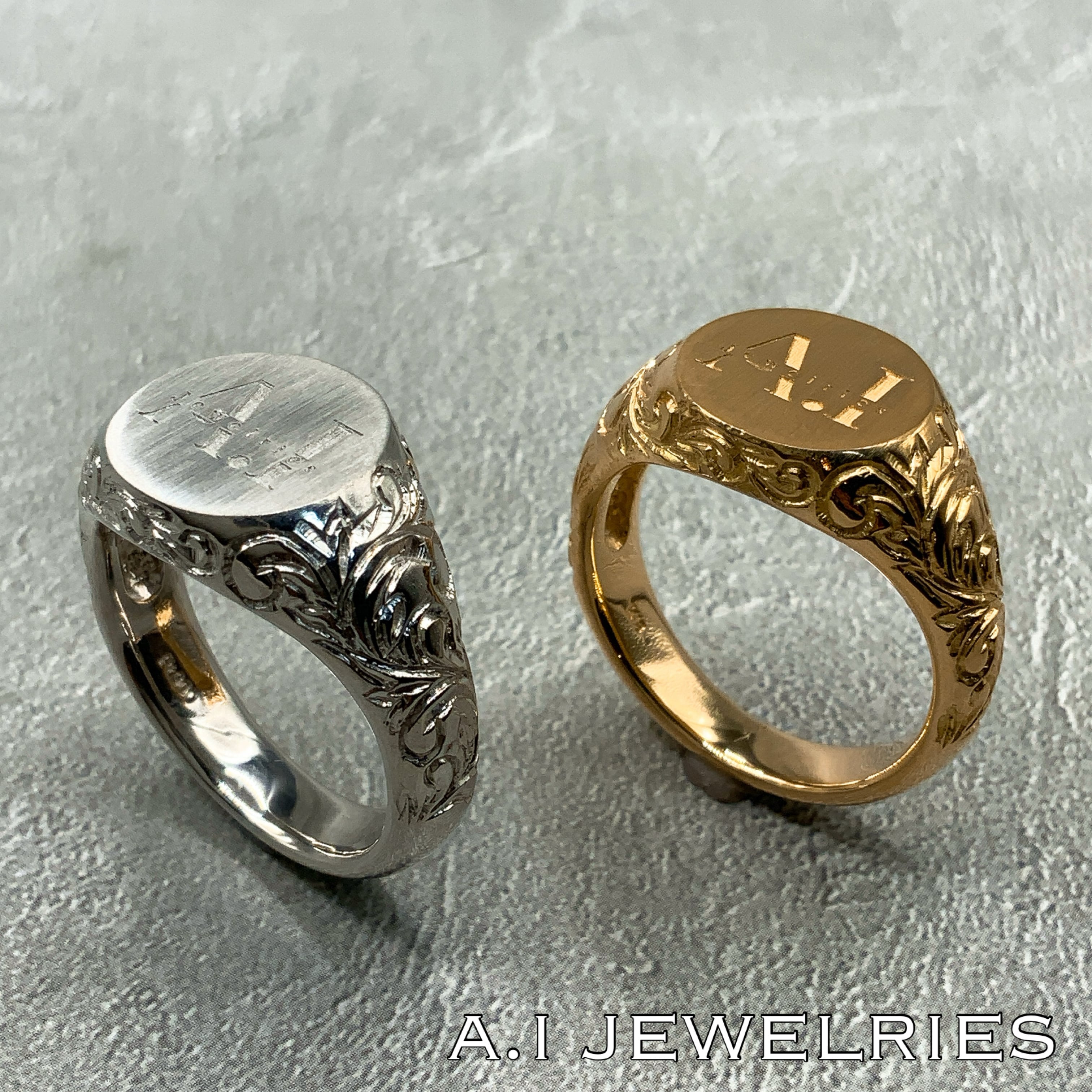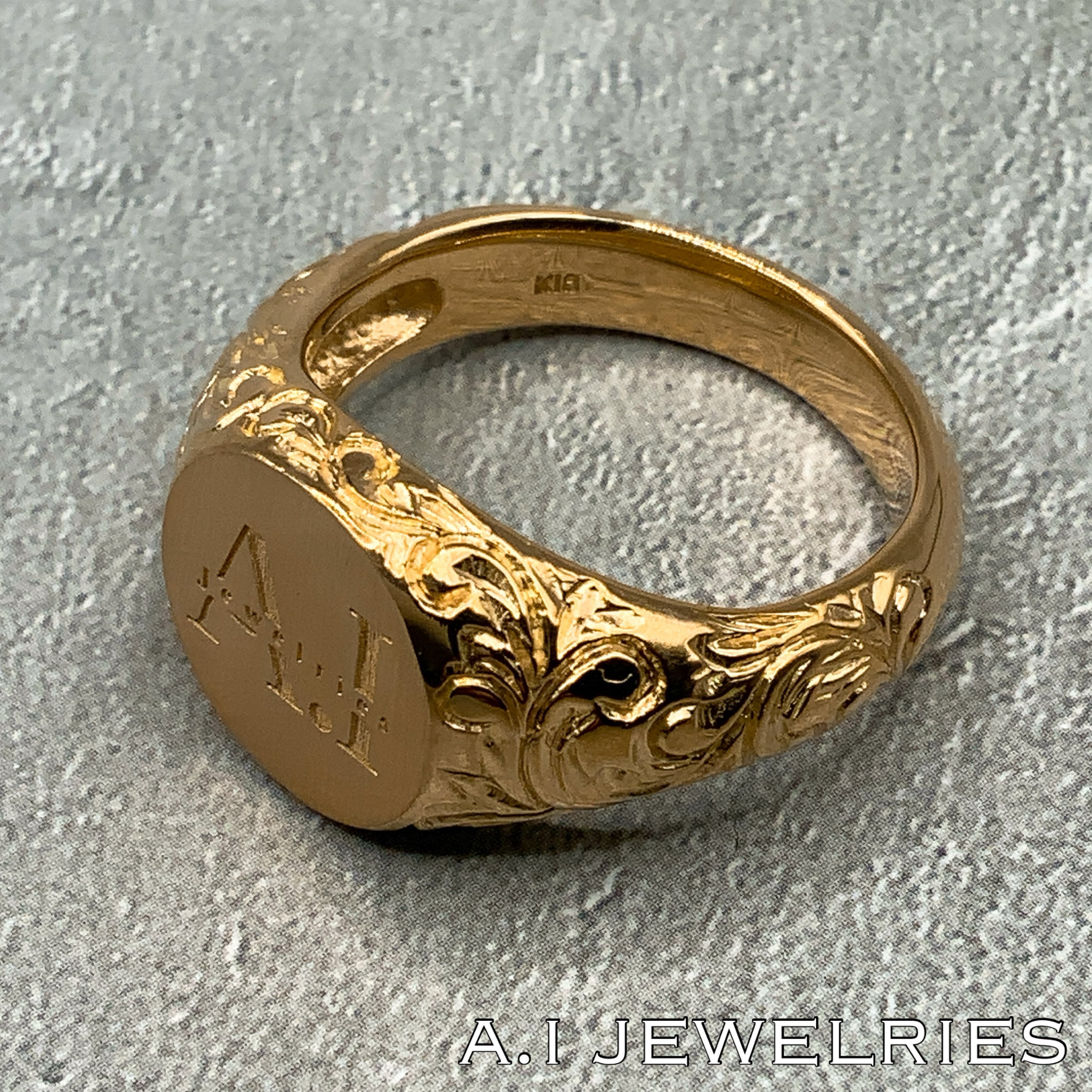 リング中央部に弊社のロゴである、(AI jewelries)のデザインを施したリングです。
