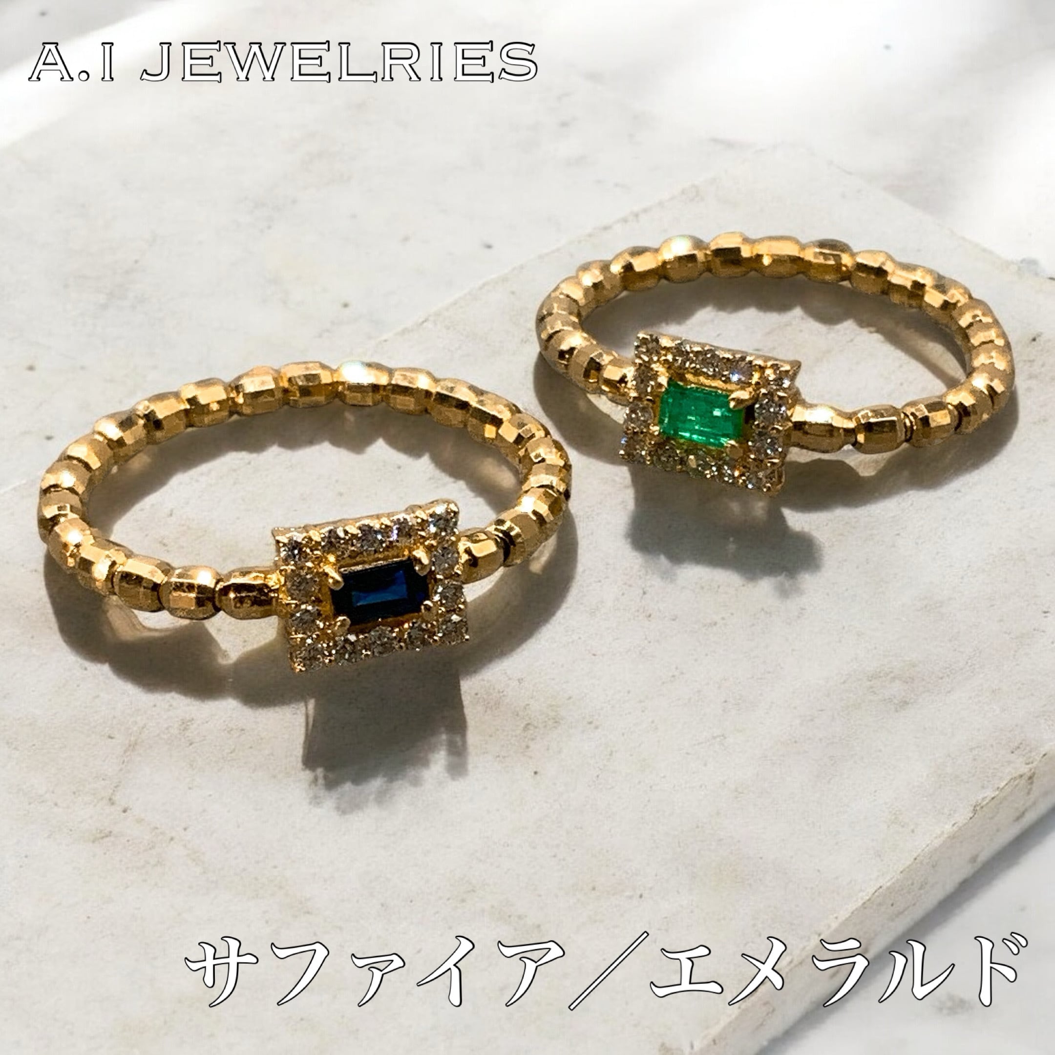 #K18 #18金 #サファイア #sapphire #ダイヤモンド #diamond #アジャスタブル #adjustable #形状記憶ワイヤー #ring #リング #エイアイジュエリーズ #レディース #aijewelries