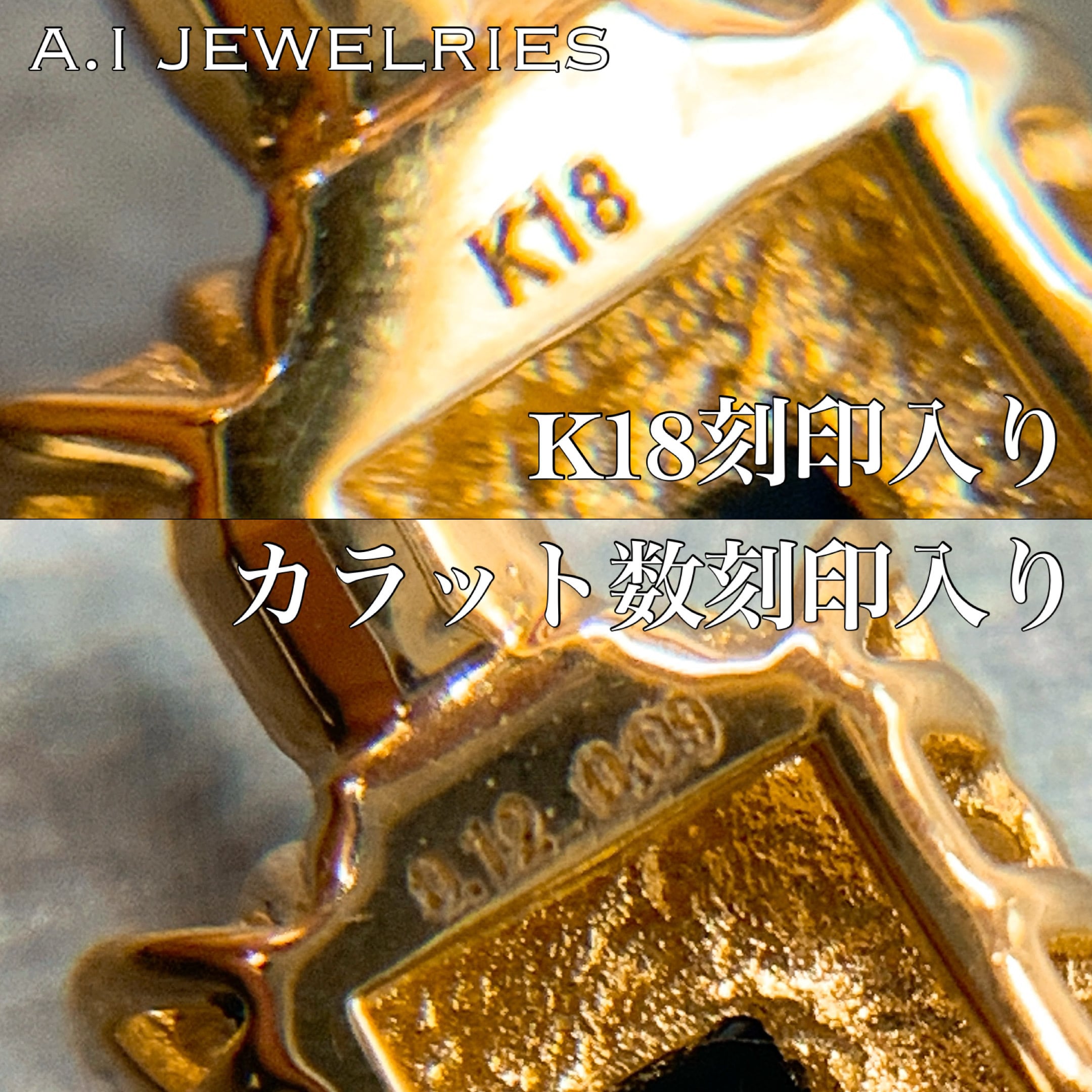K18刻印入りで安心の18金ジュエリー。本物のK18であることを保証する品質保証書付きです。メッキやGPではございません。