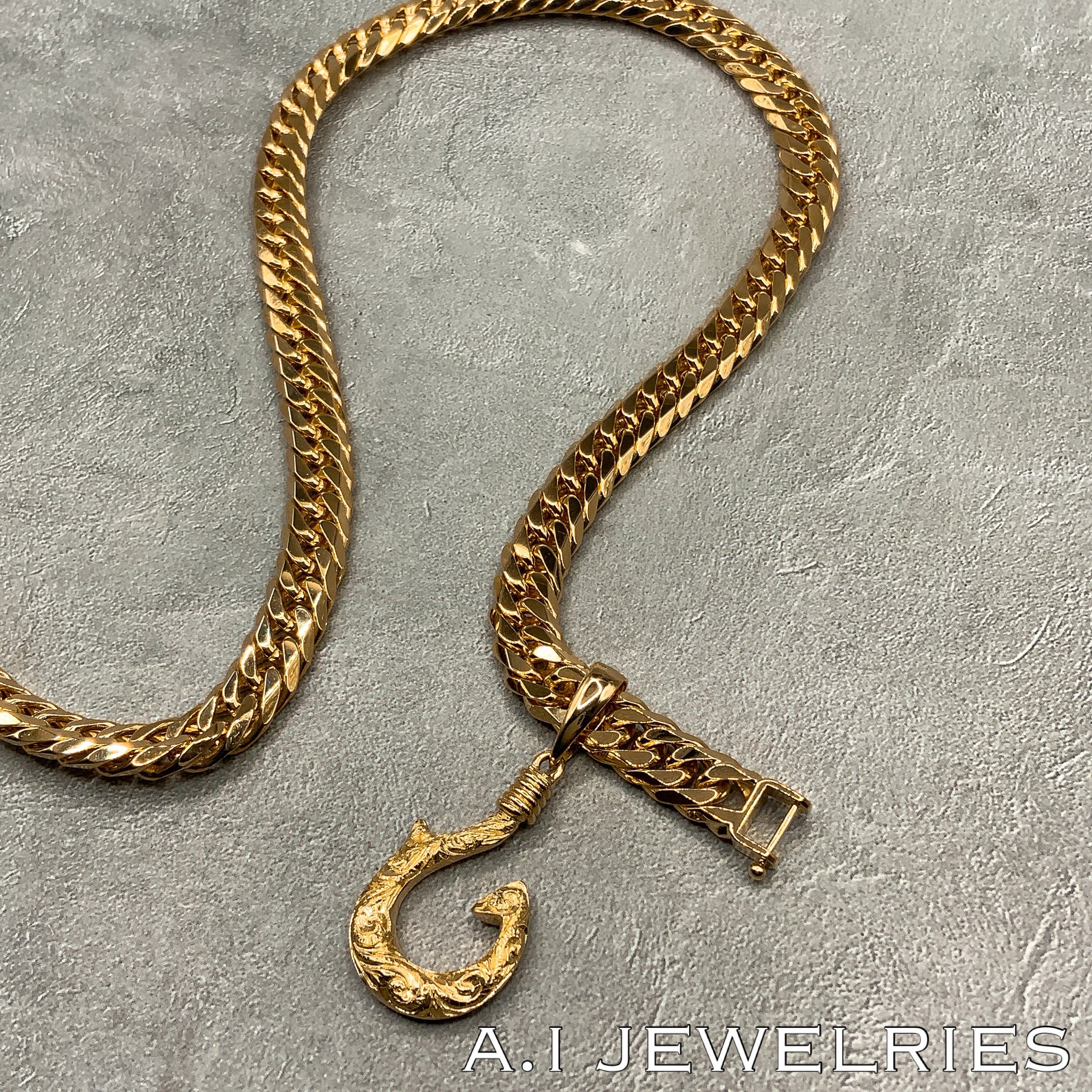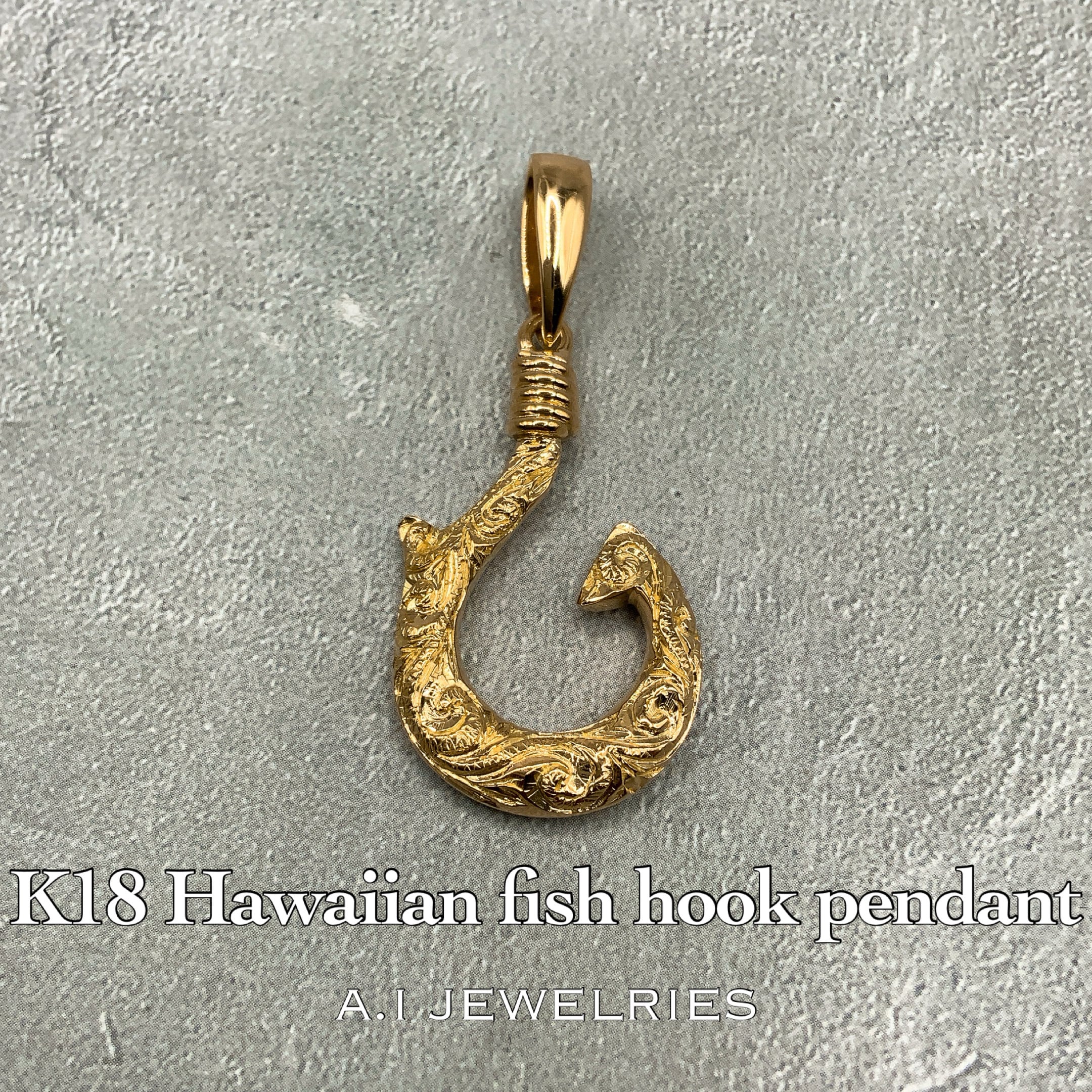 #K18 #18金 #hawaiian #ハワイアン #フィッシュフック #fish hook #釣り針 #Hawaiian pendant #ペンダント #デザインペンダント #上品 #オシャレ #pendant #エイアイジュエリーズ #aijewelries