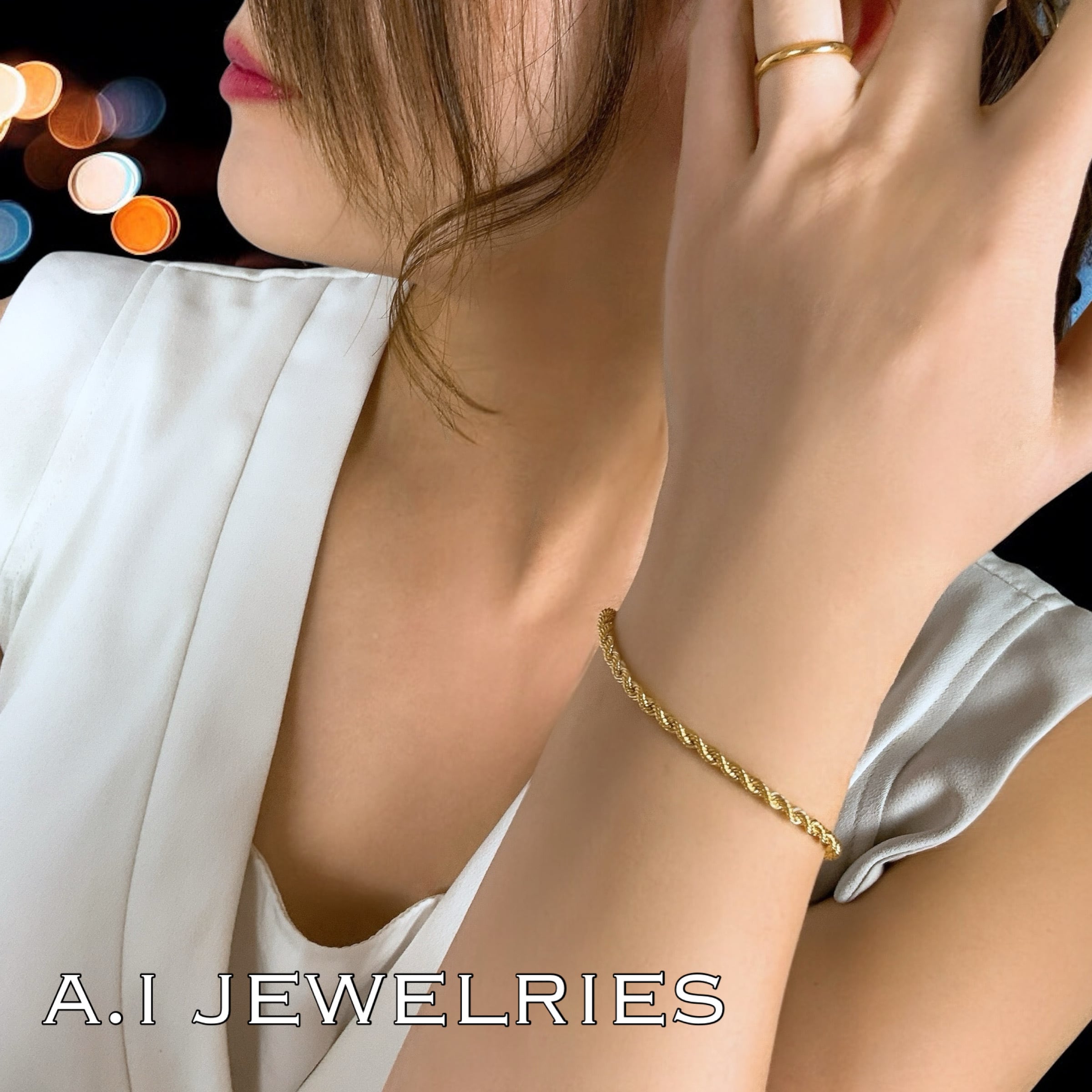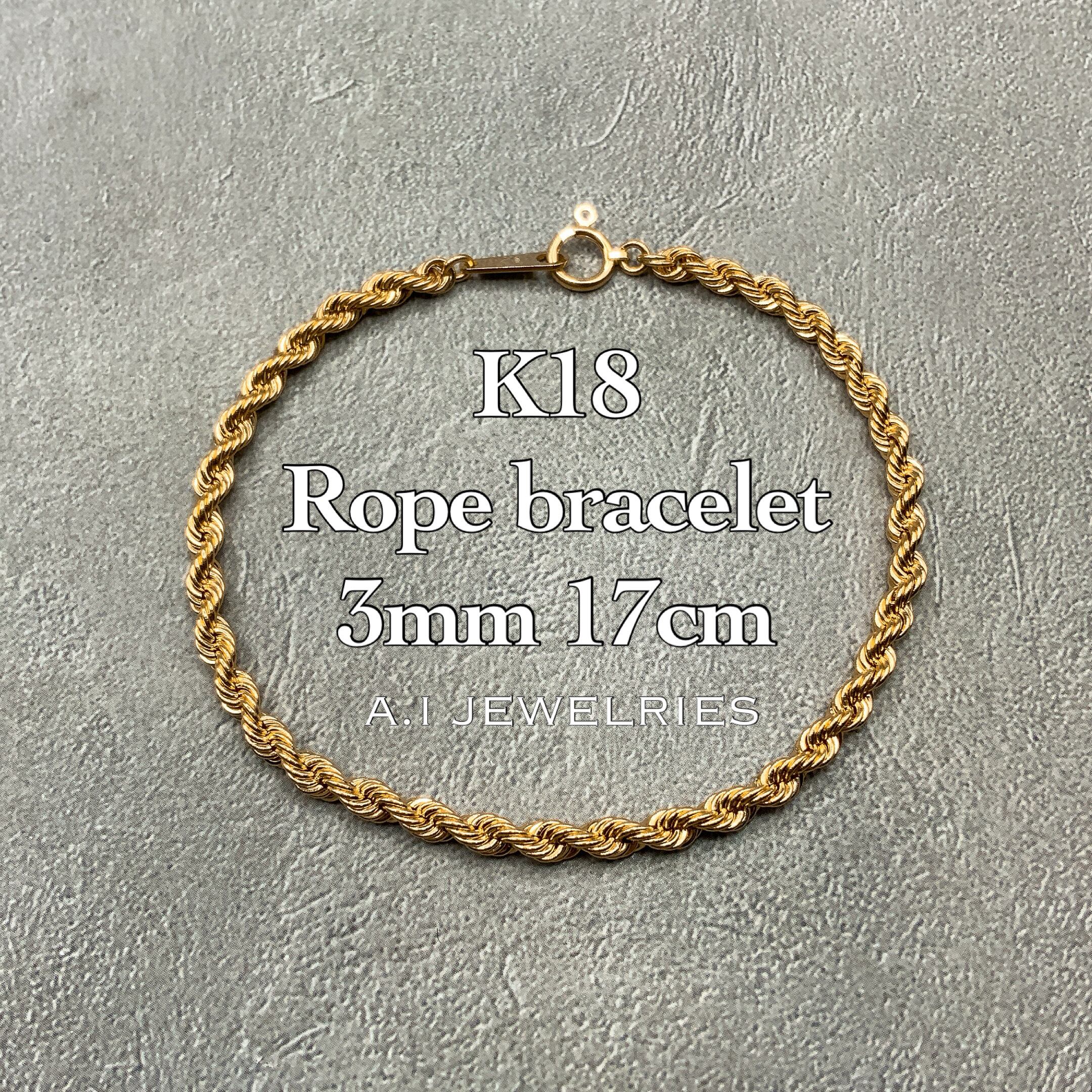 #K18 #18金 #金 #ロープチェーン #rope chain #ロープ #上品 #オシャレ #bracelet #ブレスレット #aijewelries #エイアイジュエリーズ #3mm #17cm