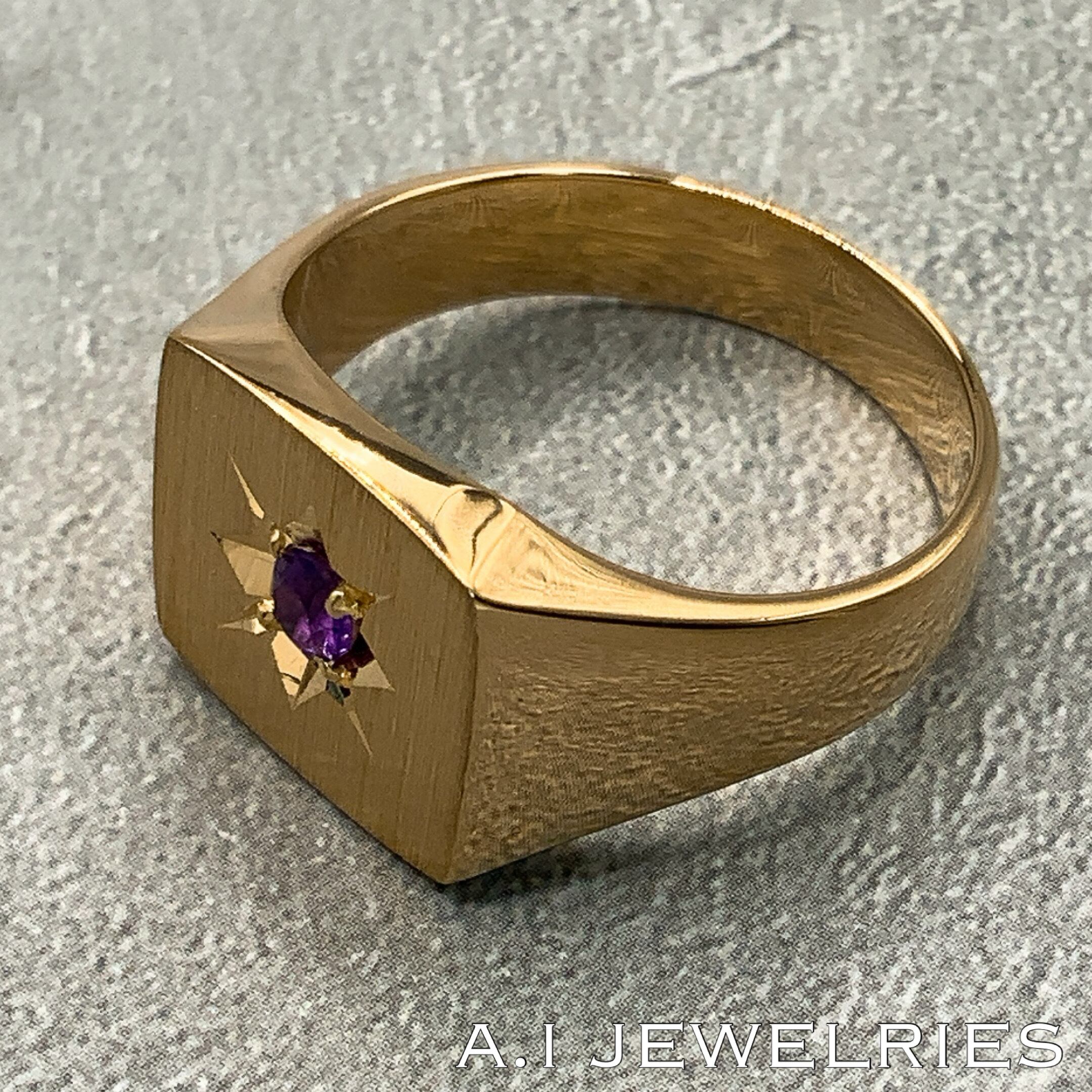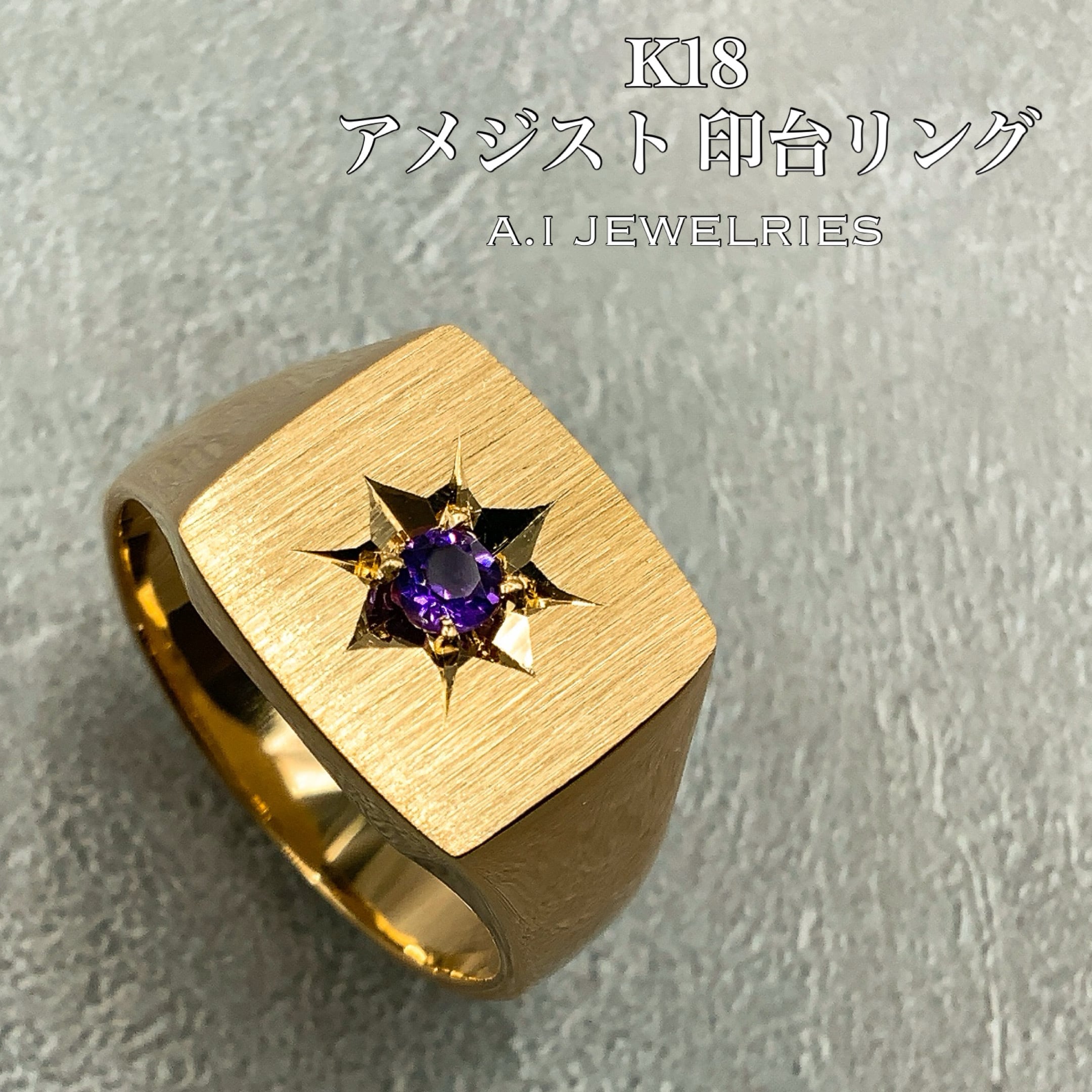 #K18 #18金 #アメジスト #amethyst #印台リング #indai #キラキラ感 #オシャレ #上品 #一粒石 #デザインリング #美しい #ring #リング #エイアイジュエリーズ #メンズ #aijewelries