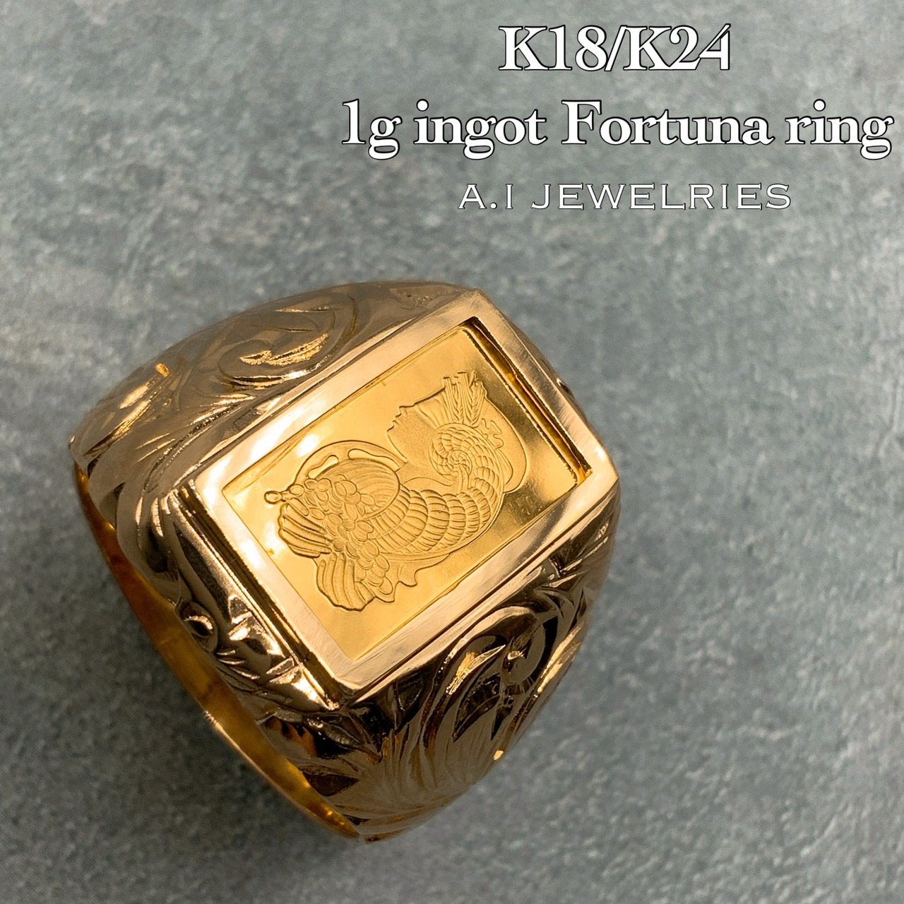 18金 24金 1グラム フォルトゥーナ リング メンズ / K18 K24 1g Ingot fortuna ring / 品番r027-f-nk