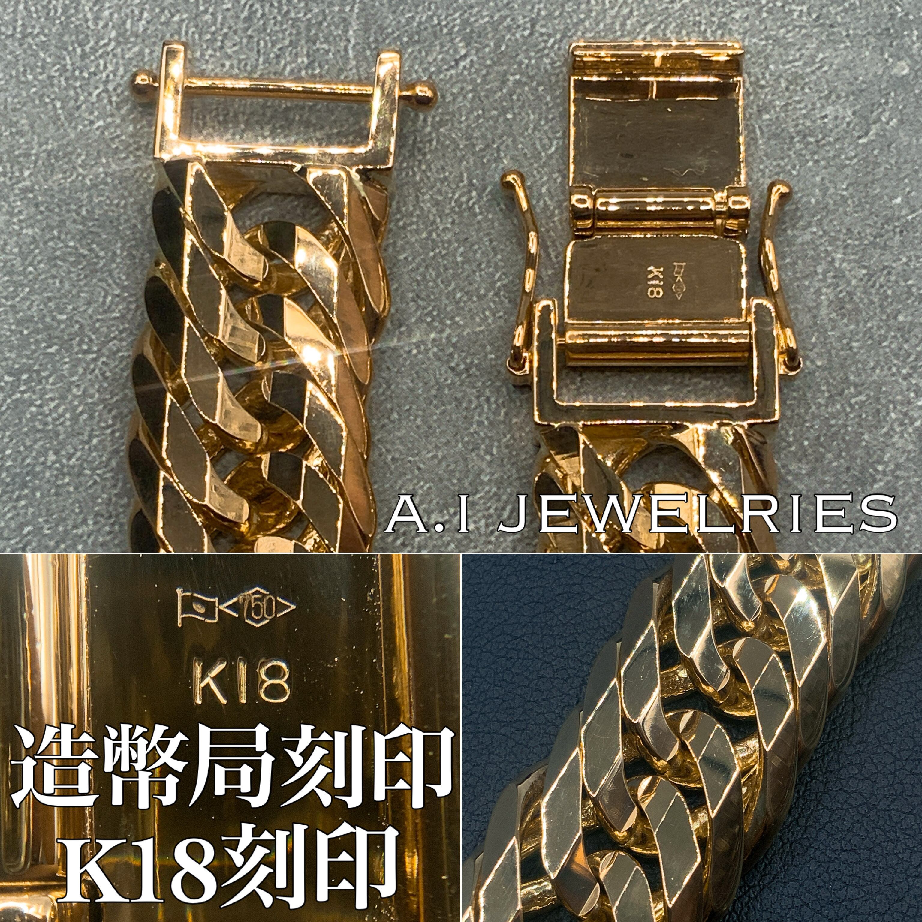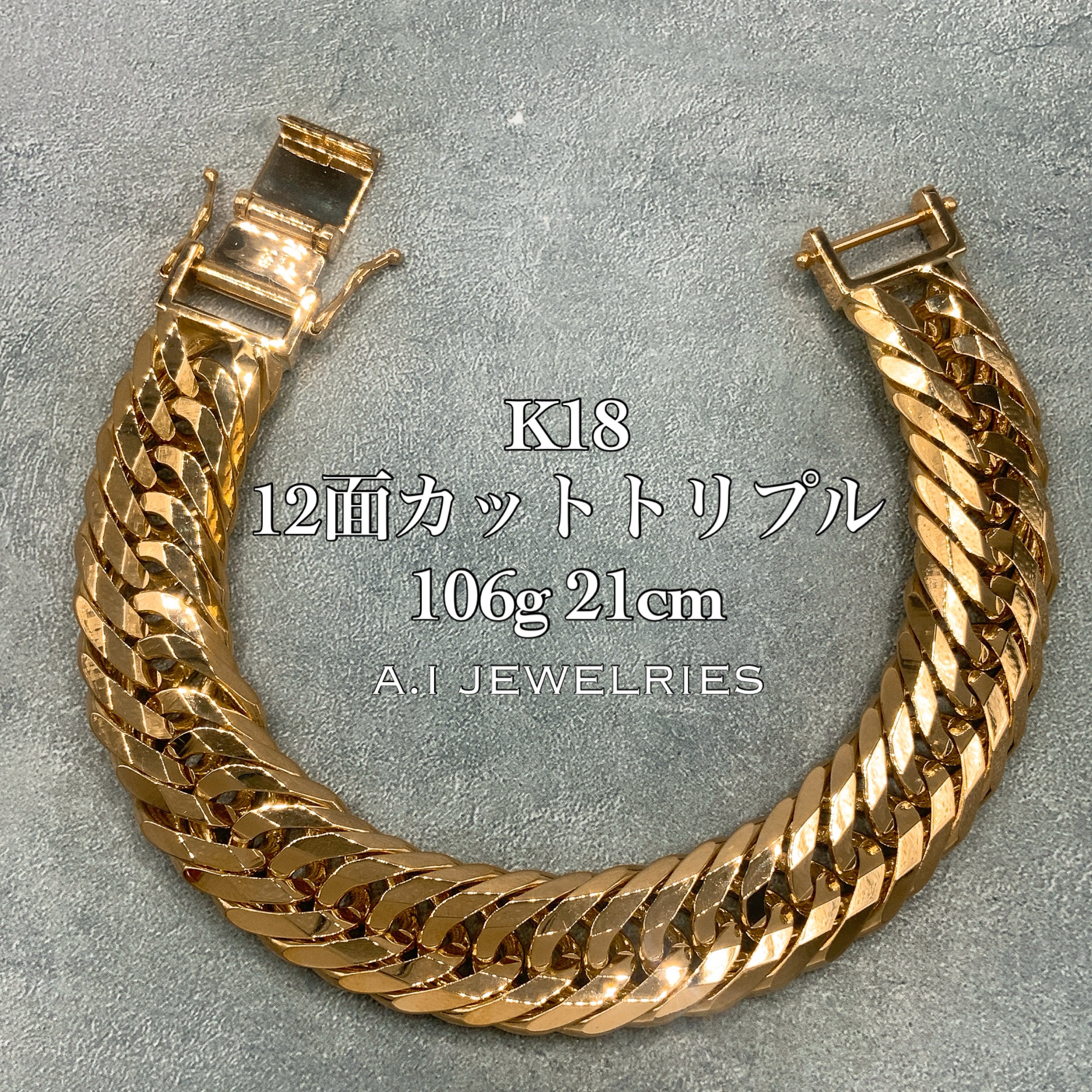 #K18 #18金 #金 #12面カット #12面カットトリプル #12cut #triple #トリプル #bracelet #ブレスレット #喜平チェーン #喜平 #aijewelries #エイアイジュエリーズ #106g #21cm #キヘダン #圧倒的存在感 #重量級