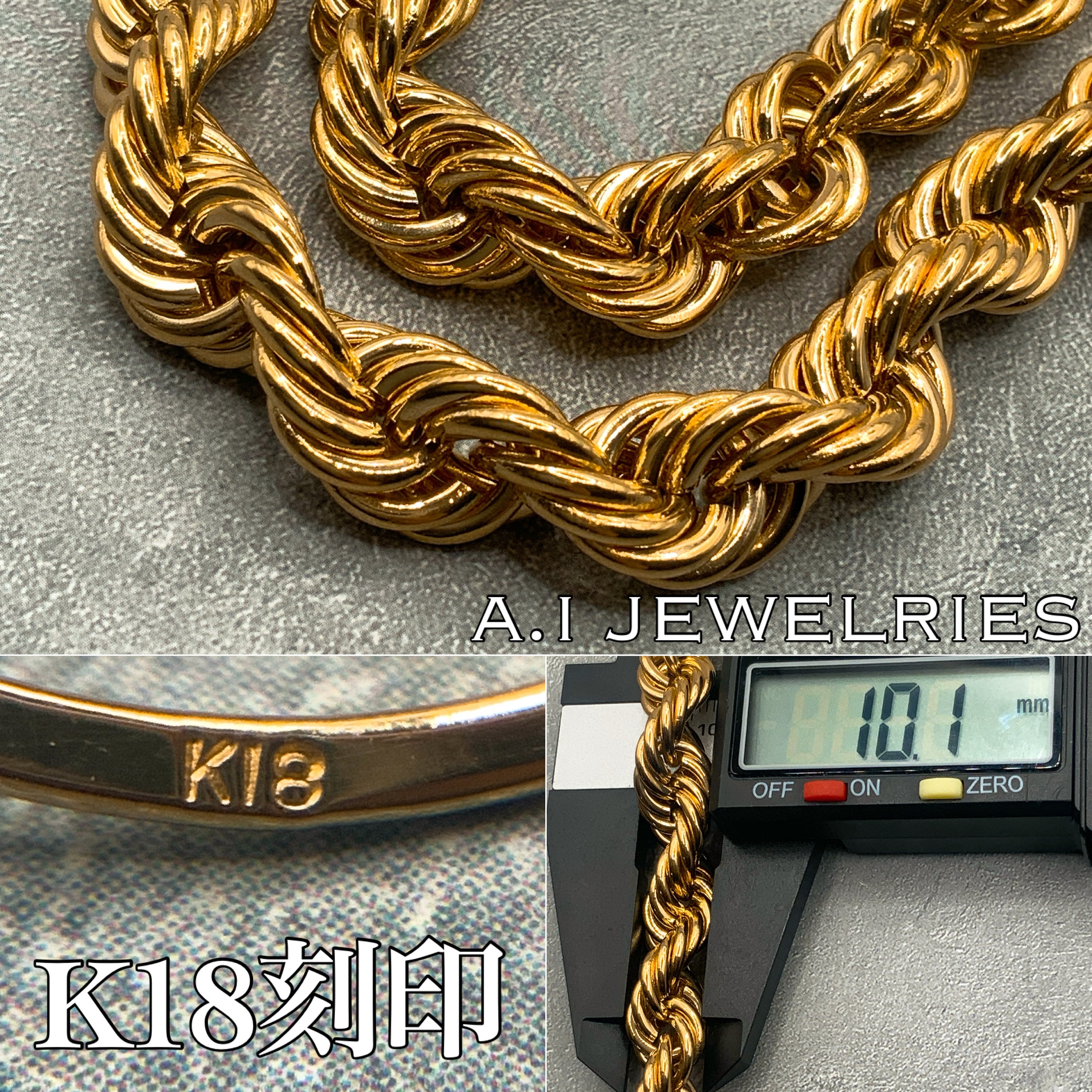 #K18 #18金 #金 #ロープチェーン #rope chain #ロープ #特大 #圧倒的存在感 #ロープネックレス #オシャレ #ネックレス #necklace #aijewelries #エイアイジュエリーズ #メンズジュエリー #10mm #55cm