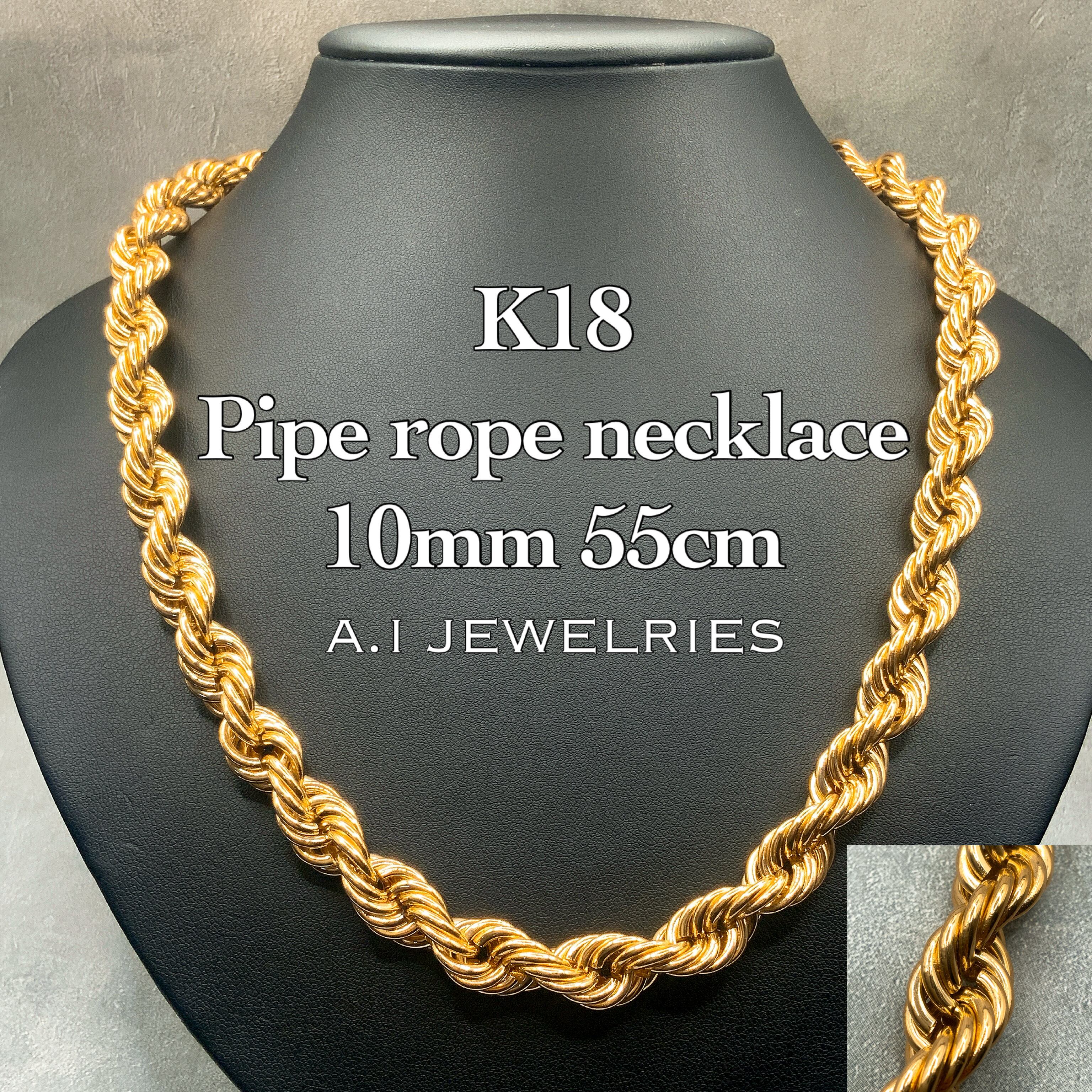 18金 パイプ ロープ チェーン ネックレス 10ミリ 55センチ メンズ / K18 Rope chain necklace 10mm 55cm 品番krn-1055