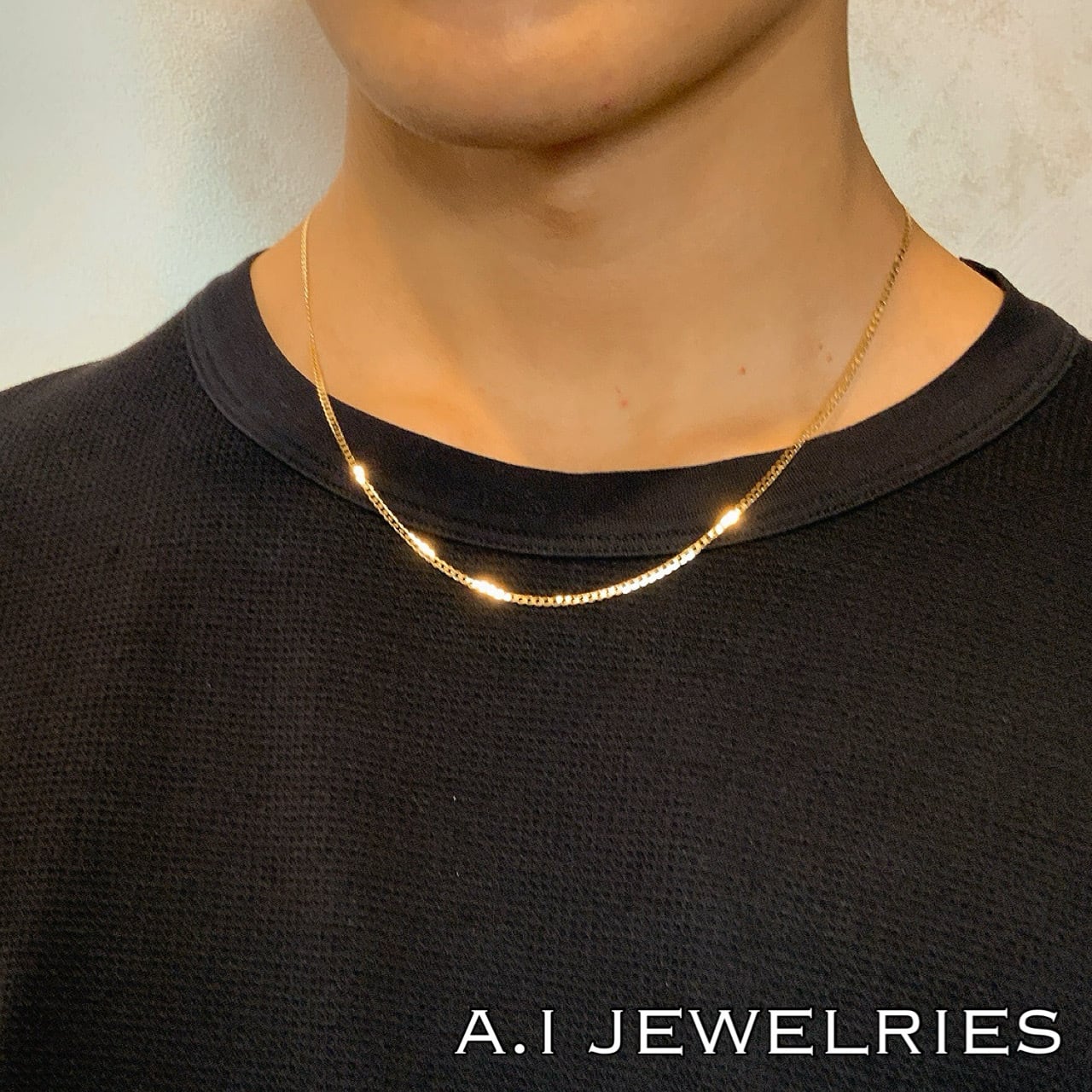 #K18 #18金 #金 #フラット #チェーン #flat #chain #ネックレス #necklace #デザインチェーン #aijewelries #エイアイジュエリーズ #50cm