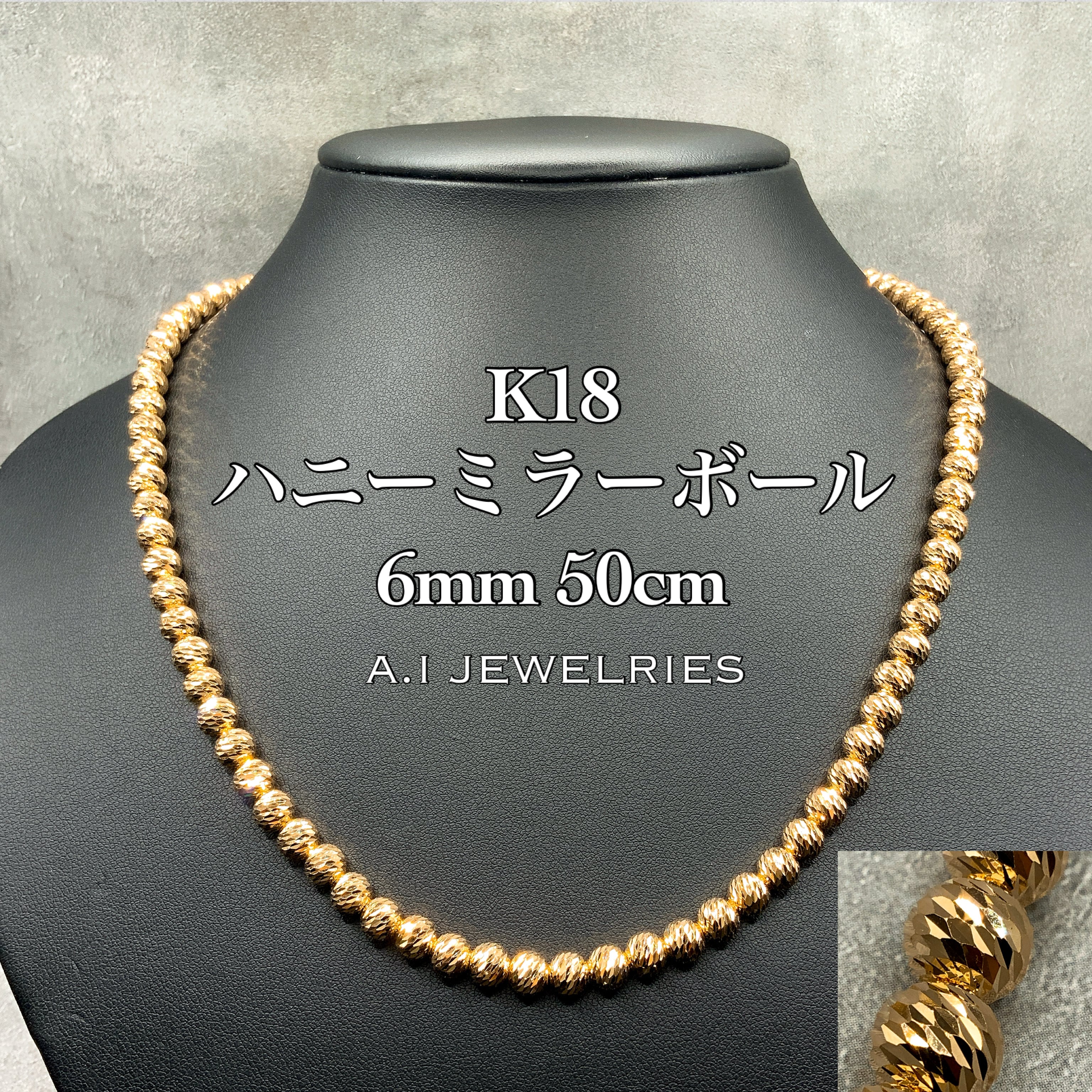 #K18 #18金 #金 #ハニーミラーボール #ミラーボール #キラキラ感 #存在感 #デザインチェーン #ネックレス #necklace #チェーン #aijewelries #エイアイジュエリーズ #6mm #50cm